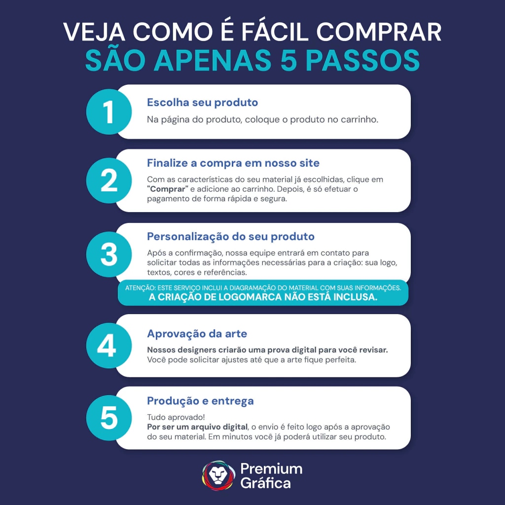 Entrega Digital: Com a arte aprovada, enviamos o seu arquivo .PDF final diretamente para seu e-mail ou WhatsApp.